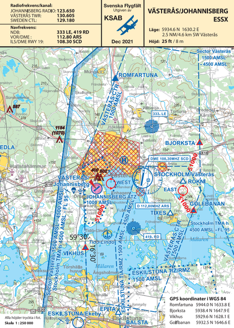 Johannisbergs flygfält ESSX är ATZ men ligger under Västerås CTR.